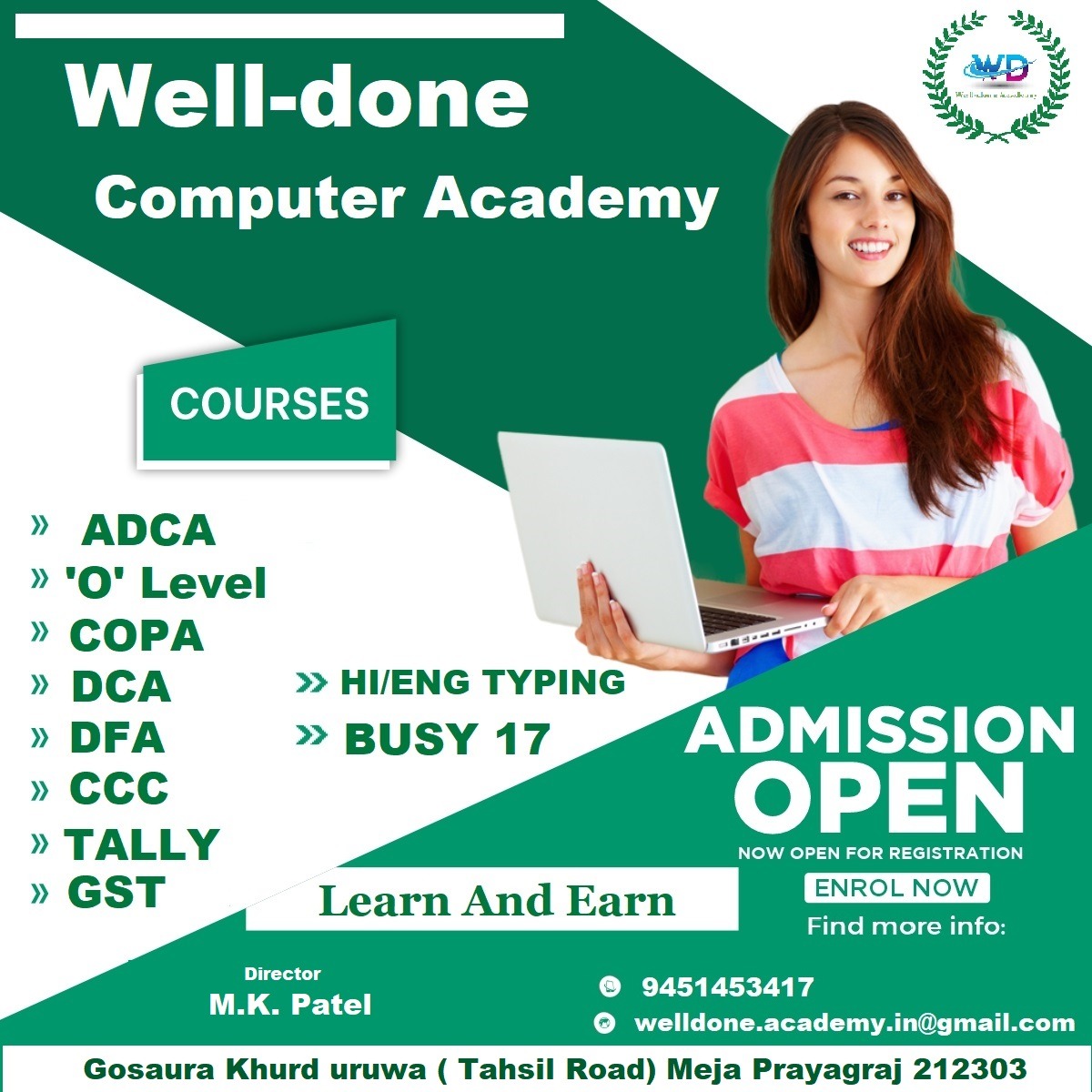 I am delighted to introduce the worth name in computer education as _Well-done Computer Academy_ to bring out your dreams close reality in professional life and skills.In the area of science and technology, computer education is the integral part of every profession.